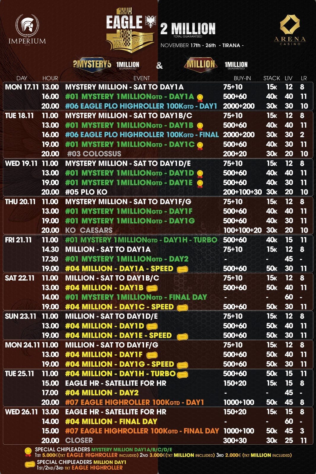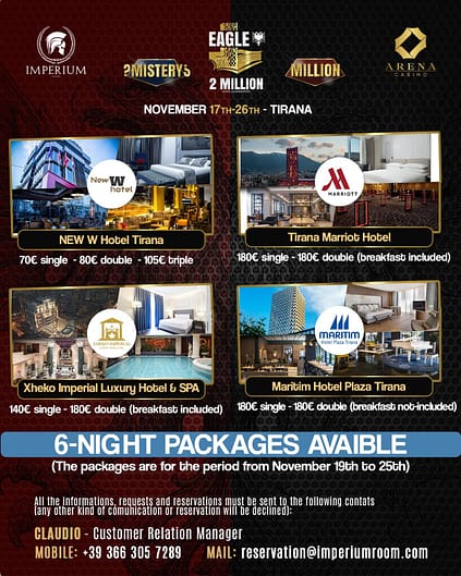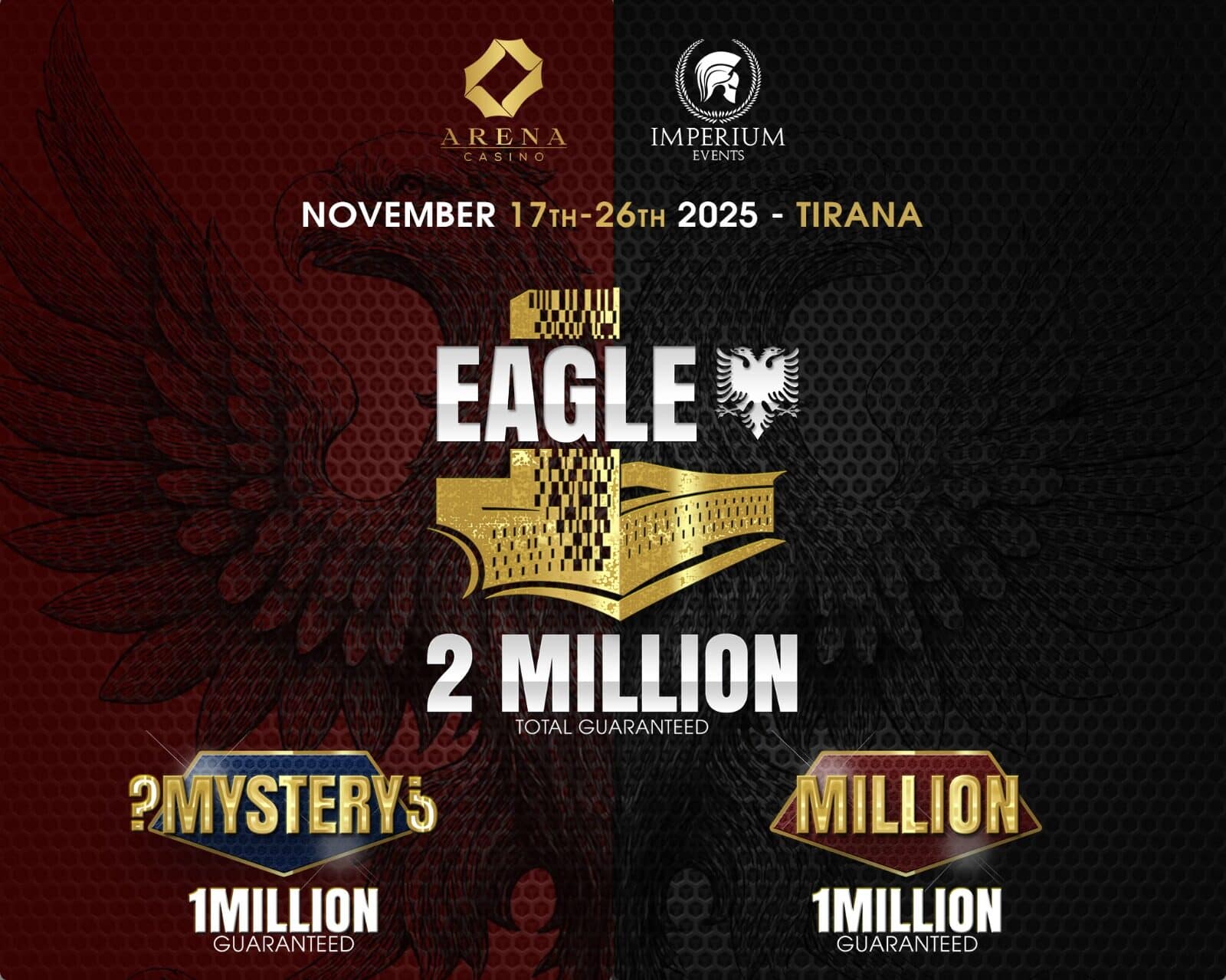 The wait is finally over. The stage is set, the chips are stacked, and from November 17th to 26th the Arena Casino in Tirana becomes the home of one of the most ambitious poker festivals of the year: Eagle 2 Million, presented by Imperium Events.