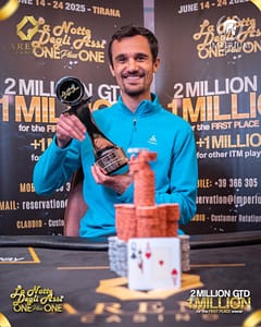 🛕 Tongue out, Del Piero–style — but this is Daniele De Gennaro, a Milan native now based in Malta, and this is a day he will remember for a long time. Not only for winning the 📨 MILLION MYSTERY BOUNTY 📨 €1M GTD, but also for pulling a €100K Mystery Bounty, defeating MPF champion Andro Scarpa in the final heads-up and denying him the double, and for collecting several other Mystery Bounties, including the €20K and €5K ones.