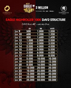 But the action doesn’t stop there. High rollers won’t be left behind: the Eagle PLO Highroller and Eagle Highroller promise intense battles at the top levels, while side events like the Colossus, KO Caesars, and a series of Speed Flights keep the excitement going from morning till night.
