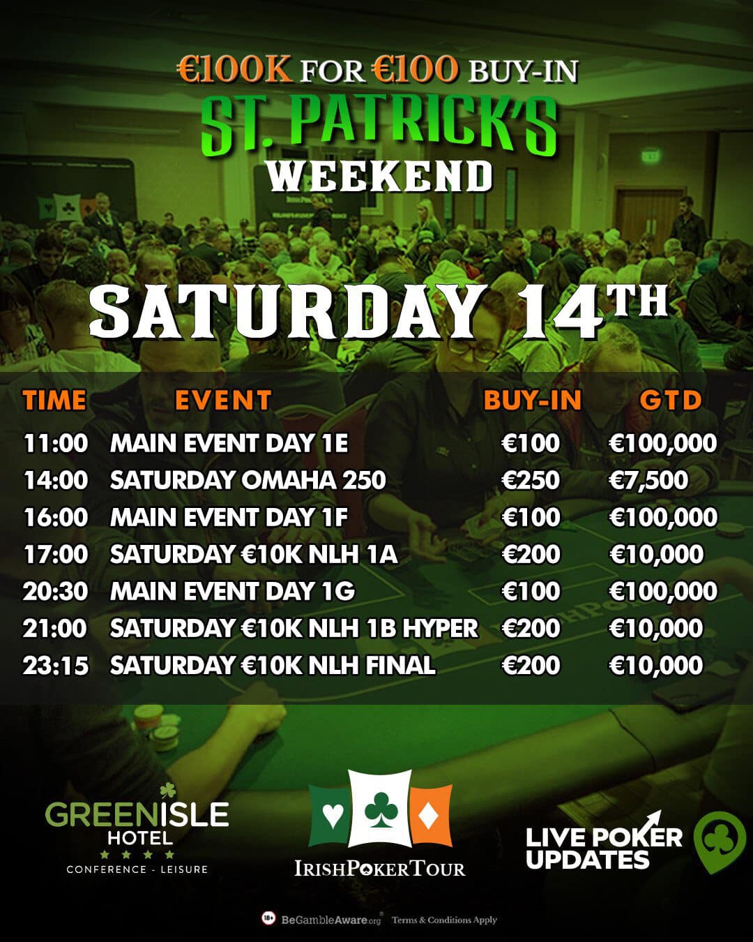 €100K For €100 Saturday Lineup