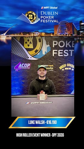 In addition, selected satellite winners receive a €100,000 Golden Ticket bonus, which adds an extra layer of incentive should they go on to win the live event. Across ten days of action at the Bonnington Hotel Conference Centre, the festival features more than €400,000 in guaranteed prize pools, with online Day 1 options available through WPT Global before play moves to Dublin.